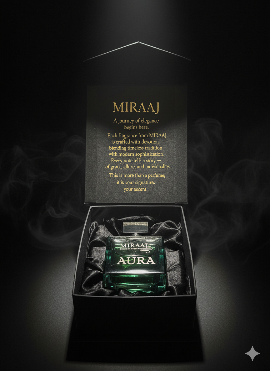 AURA 50ML by Miraaj is a fragrance crafted to embody elegance, charm, and confidence. With its harmonious blend of refreshing top notes, captivating heart accords, and a warm, lasting base, it creates an aura that lingers beautifully around you. Perfect for both daily wear and special occasions, AURA 50ML is more than just a perfume—it’s a signature statement of sophistication and style.