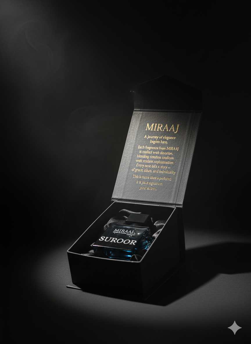Suroor is a timeless fragrance crafted for both men and women who appreciate elegance and sophistication. Opening with a captivating blend of fresh and aromatic notes, it gradually settles into a warm, luxurious heart, leaving behind a lingering aura of charm and confidence. Balanced perfectly for any occasion, Suroor is more than just a perfume—it is a statement of grace, style, and individuality.